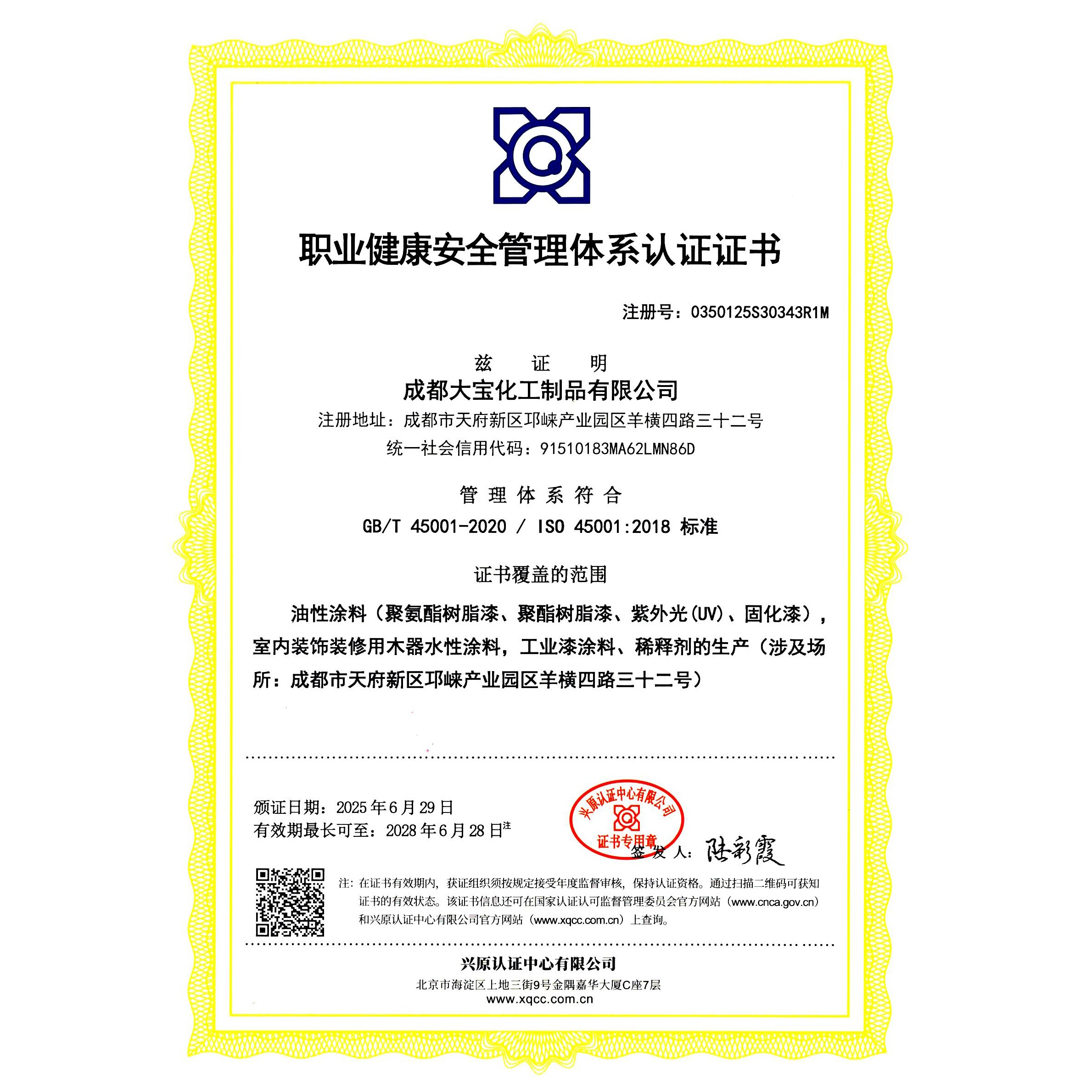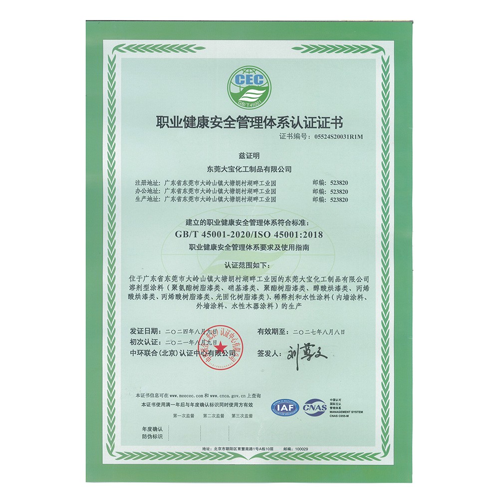 職業健康安全管理體系認證(成都大寶)