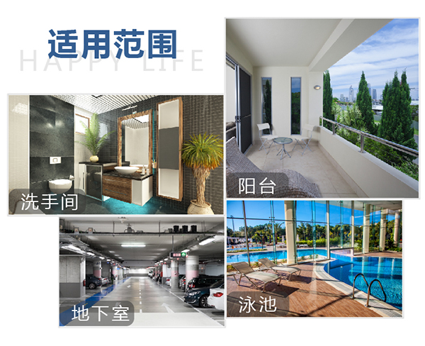 墻體:適用于墻體背水面的防潮處理,有效防止潮濕和霉變的發生,保持墻面干燥。