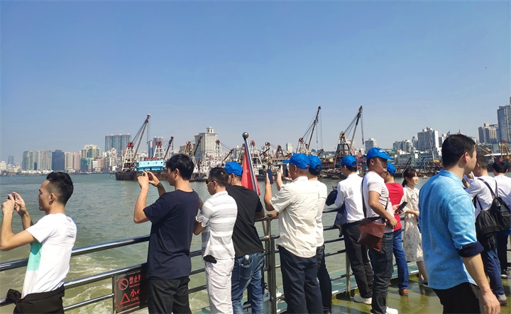 第一站,大家坐郵輪參觀港珠澳大橋。港珠澳大橋是中國境內一座連接中國香港、廣東珠海和中國澳門的橋隧工程,位于中國廣東省珠江口伶仃洋區域內,因其超大的建筑規模、空前的施工難度以及頂尖的建造技術而聞名世界。在這里,大家能欣賞港珠澳大橋帶來的震撼視覺盛宴,感受世紀工程的宏偉。