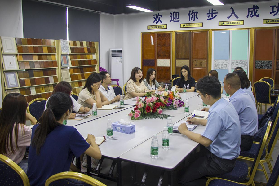 結合目前國家的環保政策及順德家具行業的具體情況,伍秘書長提出了一些很好的建議與方案,同時代表企業如何推動水性家具漆在家具產品上深度的應用,與大寶漆的領導和專家交換了意見,并得到了滿意的答復。