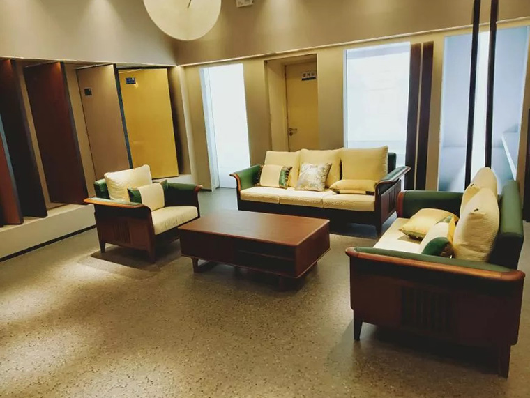 此區(qū)有面與面交疊的色板產(chǎn)生的空間立體感,在燈光的渲染下,產(chǎn)生特有的節(jié)奏和韻律,滲透出寫意之感,置身其中洽談業(yè)務(wù)、尋找靈感再適合不過了!
