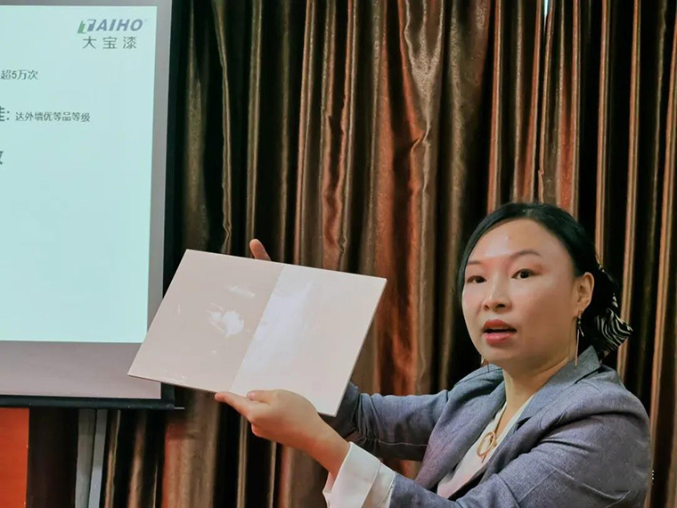 在進(jìn)口品牌荷蘭高樂伯涂料(GLOBAL PAINT)產(chǎn)品介紹和技術(shù)交流環(huán)節(jié),培訓(xùn)學(xué)校夏秀麗老師對(duì)高樂伯品牌的發(fā)展、產(chǎn)品體系、歐洲環(huán)保認(rèn)證、產(chǎn)品體驗(yàn)、配套輔材等內(nèi)容穿插播放產(chǎn)品廣告片視頻,完整有系統(tǒng)地介紹高樂伯涂料的產(chǎn)品亮點(diǎn)和優(yōu)勢。