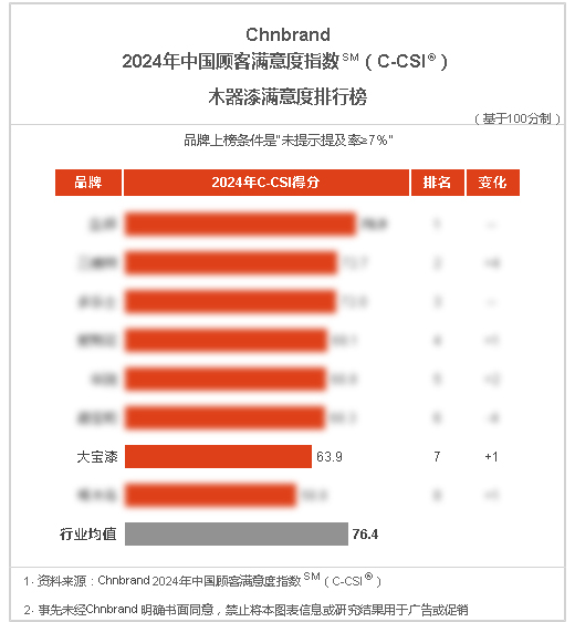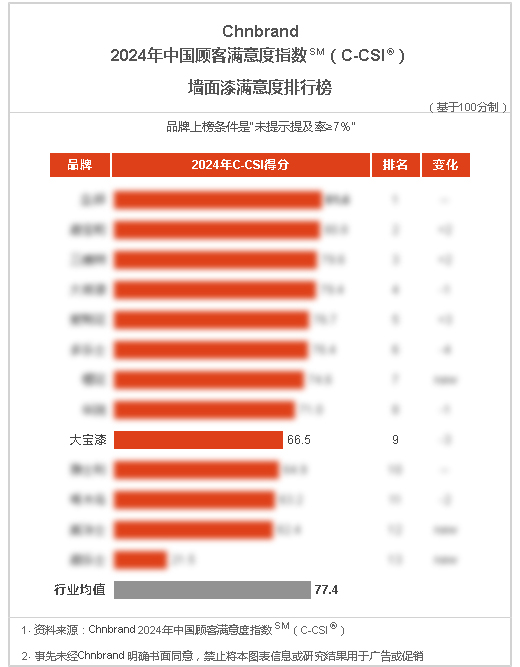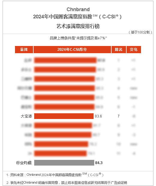 喜訊│大寶漆榮獲2024年中國顧客滿意度指數(C-CSI?)三項殊榮