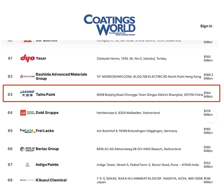 近日,美國權威雜志《涂料世界》(Coatings World)發布了2025年全球頂級涂料企業排行榜。作為中國涂料行業的優秀企業,大寶漆憑借卓越的產品品質和持續創新能力,再度上榜。
