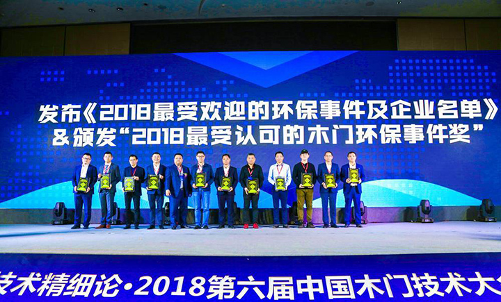 大寶漆榮獲2018最受認可的木門環保事件獎(左四謝偉代表領獎)