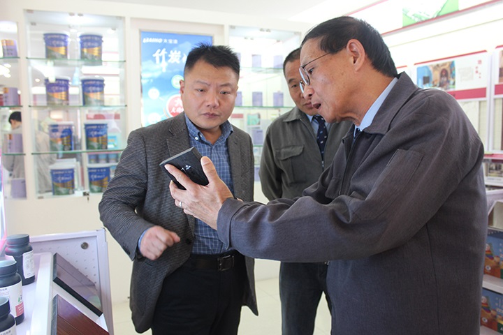 在店面展示廳,大寶漆藝術壁材樣板、木器漆樣板等系列產品效果以及“漆茶文化”引起了調研組一行的濃厚興趣。大寶漆推出的所有產品都緊緊圍繞綠色、健康、環保,以產、學、研的發展模式,聚集了一大批專業的產品科研隊伍和技術服務團隊。為確保產品品質,從原料、研發、生產、品檢、銷售和售后等環節層層把關,著力打造大寶漆綠色供應鏈?!皥猿制焚|、永續環?!钡陌l展理念、對企業文化的重視以及誠信經營、規范運營、回饋社會的良好企業形象得到了調研組一行的肯定,稱贊大寶漆為涂料制造業的發展典范。