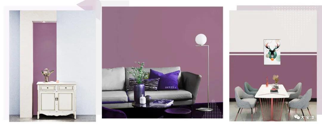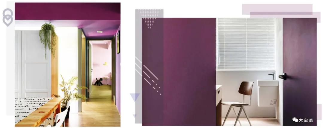 在空間中,大面積使用黑加侖紫其實(shí)不大好把控,需要把握好搭配色調(diào)和整體比例。黑加侖紫也可以與灰、木色等搭配,增強(qiáng)空間明亮感,提升家居的活力。