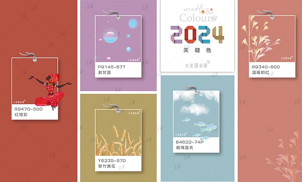 色彩趨勢會隨著社會現況和生活愿景而有所改動,直接反映出世界的變化和演進,且越來越多人開始關注如何通過色彩來傳遞心情,以便更準確地表達情感和想法,大寶設彩家2024年色彩趨勢提供設計師們勇于嘗試新的色彩詮釋,創造出一個個令人驚艷的視覺盛宴。